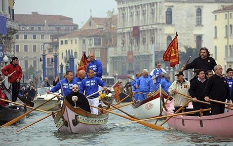 Acum 400 de ani era centrul unui imperiu ce a dominat Marea Mediteraneeana, astazi este un oras micut aflat in pragul scufundarii. Gondolele au purtat azi sicriul Reginei Adriaticii de-a lungul Marelui Canal, atragand atentia asupra faptului ca populatia orasului este in cadere libera. Venetia numara acum mai putin de 60.000 de locuitori (59.992 mai exact). Perla a Renasterii, vizitata de mai mult de 50.000 de turisti zilnic, orasul isi pierde cea mai importanta comoara: locuitorii sai.