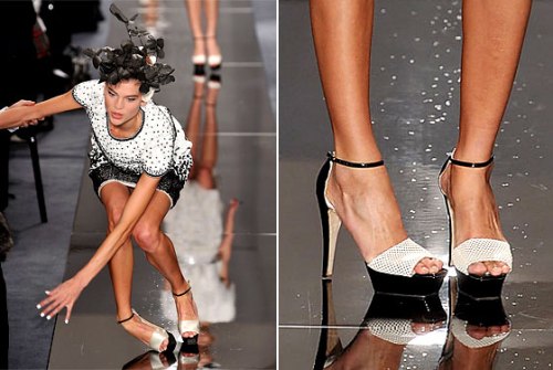Blonda de mai sus practic nu are nicio vina, orice ar zice carcotasii.Cu asemenea pantofi si unui acrobat de la Circul Globus ii e greu sa defileze.