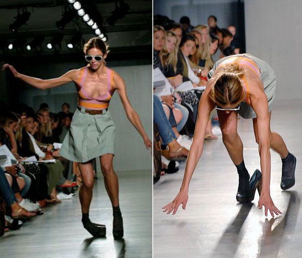 Impresarul i-a spus sa nu mai bea inainte de a intra pe catwalk. Nu a vrut sa-l asculte iar acum suporta consecintele.