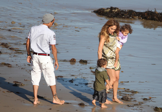 Jennifer Lopez a fost insotita de gemenii sai intr-o sedinta foto pentru noua colectie Gucci pe o plaja din Malibu. Alaturi de ei a fost si sotul artistei, Marc Anthony, cei doi comportandu-se ca doi indragostiti, dar si ca parinti responsabili si grijulii.