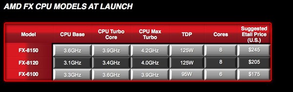 • FX-8150: opt nuclee, procesoare la 3,6 GHz (3,9 GHz Turbo Core, 4,2 GHz Max Turbo) – pret sugerat de 245 dolari