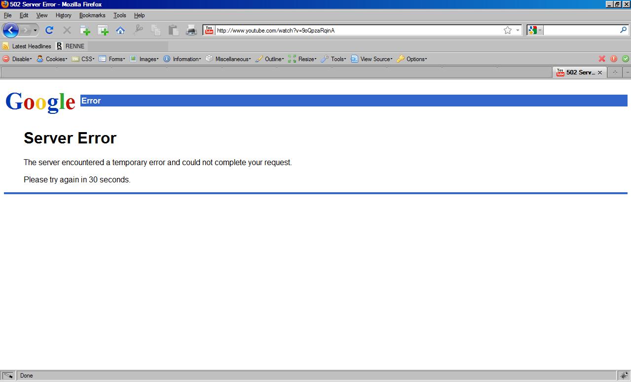 502 server error pe YouTubeCand vorbele de duh se aplica in cazul marilor companii, nu putem decat sa privim spectacolul. “Cu cat esti mai sus, cu atat cazi mai tare” pare sa fie aplicabila astazi pentru YouTube.