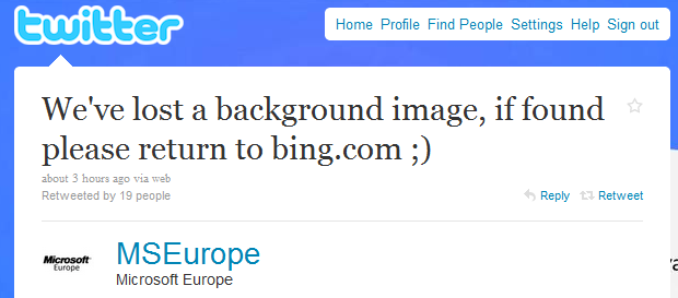 ight=”150″ />Echipa europeana a Microsoft si-a folosit contul de Twitter pentru a face misto de una din ultimele decizii luate de Google: abilitatea de a adauga imagini de fundal pe pagina de Google pentru utilizatori.