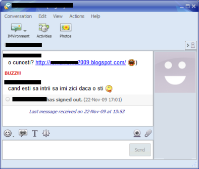 Da…nu va ganditi ca este vorba de cineva din “Troia” sau ceva istoric de genul. Vorbim despre un virus informatic, “cal troian” mai exact. Pana in momentul actual atacurile informatice prin Yahoo! Messenger utilizau numai fraze in limbi straine, redactate pe o singura linie text. Se pare ca acum virusul stie si limba romana. Nu e nimic suprinzator momentan, dar daca va zic ca el sta pe mess si chat-uieste cu dumneavostra…v-ar putea pune pe ganduri. Trojan-IM.Win32.Agent.ae este un cal troian care simuleaza dialogul cu o persoana existenta in lista de Messenger a utilizatorului infectat, indemnandu-l sa acceseze un anumit link, potrivit Kaspersky.