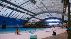 Seagaia Ocean Dome, situat in Miyazaki, Japonia, este unul dintre cele mai mari parcuri acvatice de interior din lume, avand o suprafata de circa 300 de metri pe 100 de metri. Acesta are cel mai mare acoperis retractabil din lume, care si simuleaza un cer senin cand afara ploua.