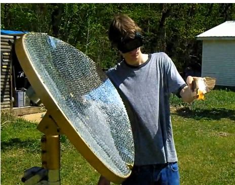 Cum a facut asta? A lipit 5.800 de mici oglinzi pe o pe o antena satelit. El a mai facut si o gaura in spate, exact in centrul “farfuriei”, pentru a o putea calibra si orienta direct spre soare.